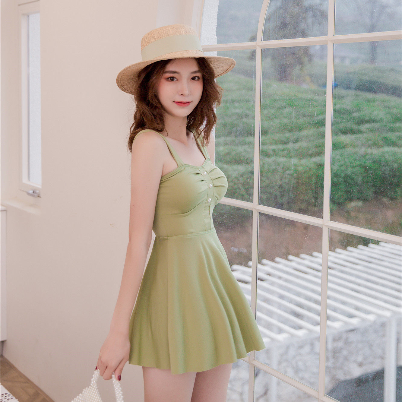 Skirt-style even for a swimsuit in a dress.