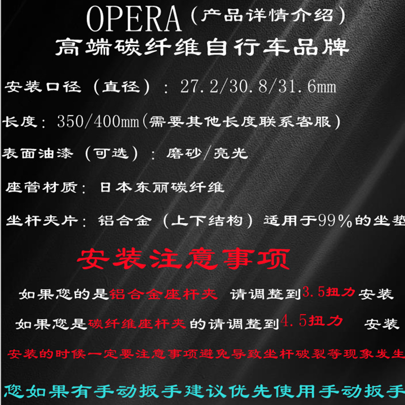 opera full carbon fiber ultra - light mountain road bike accessories seat tube seat after 3K stripe