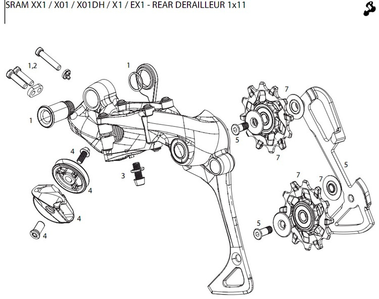 SRAM GXDH XO1DH 7 speed drop after transmission screw and dial the fastening screw finishing parts