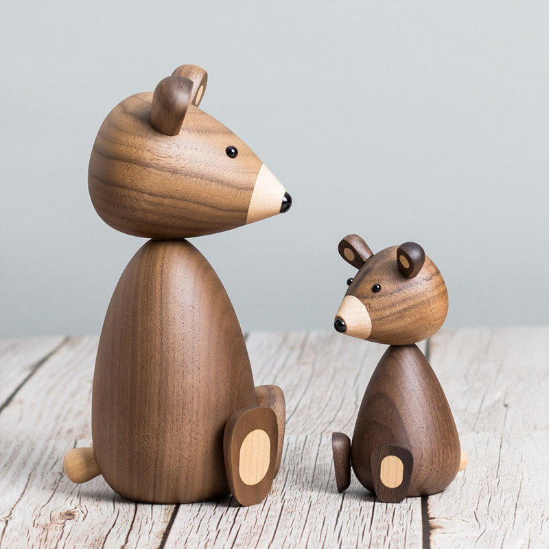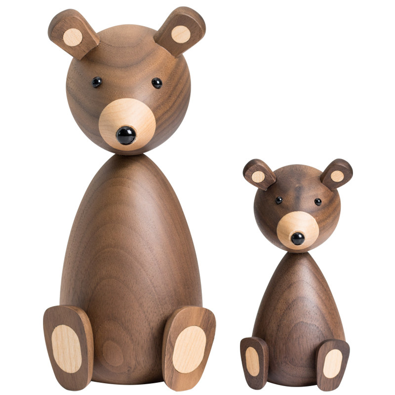 Wood Small Bear Toy Walnuts Wood Emulation Animal Nordic Home Swing Accessories house Ornament Cartoon Net Red Gifts