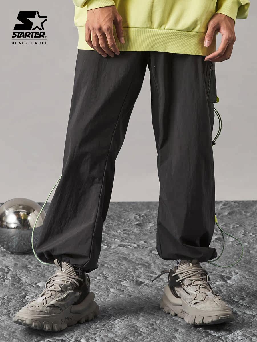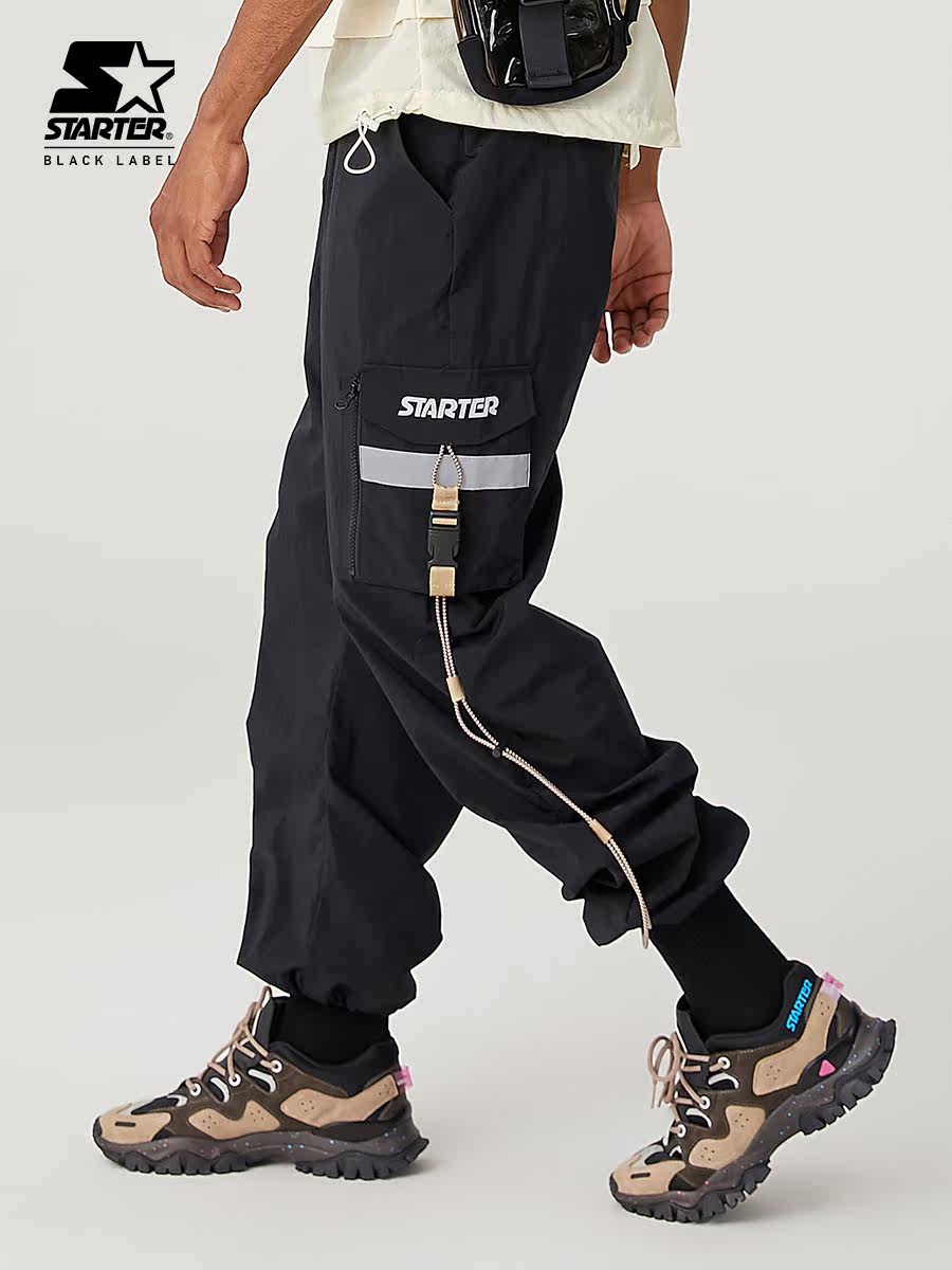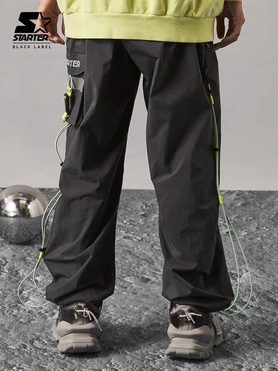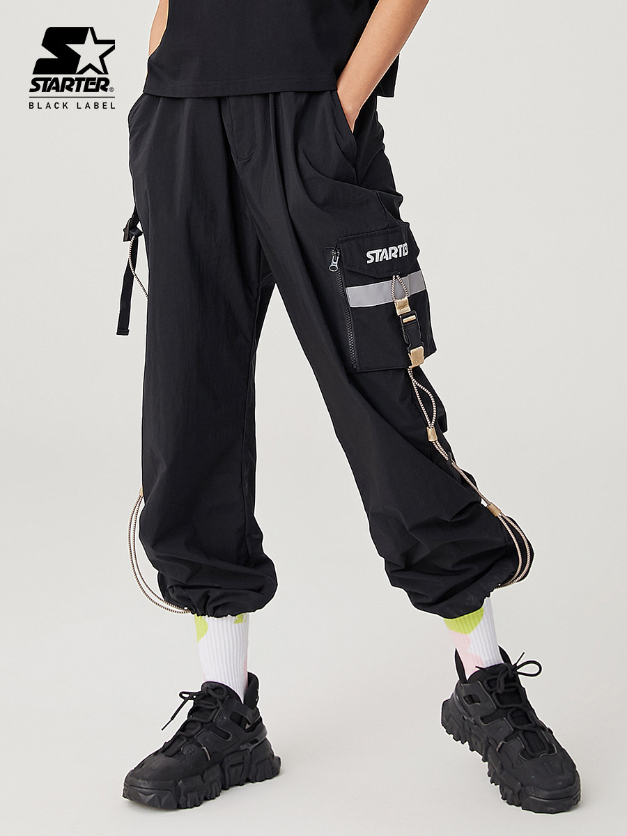 STARTER Men's and women's same style solid color trendy casual patch pocket functional drawstring woven trousers