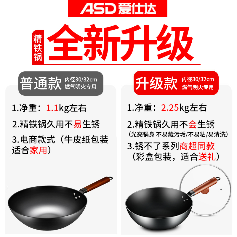 Ai Shida is not easy to rust frying pan 30 32cm household uncoated cooking gas stove suitable for lightweight fine iron pot