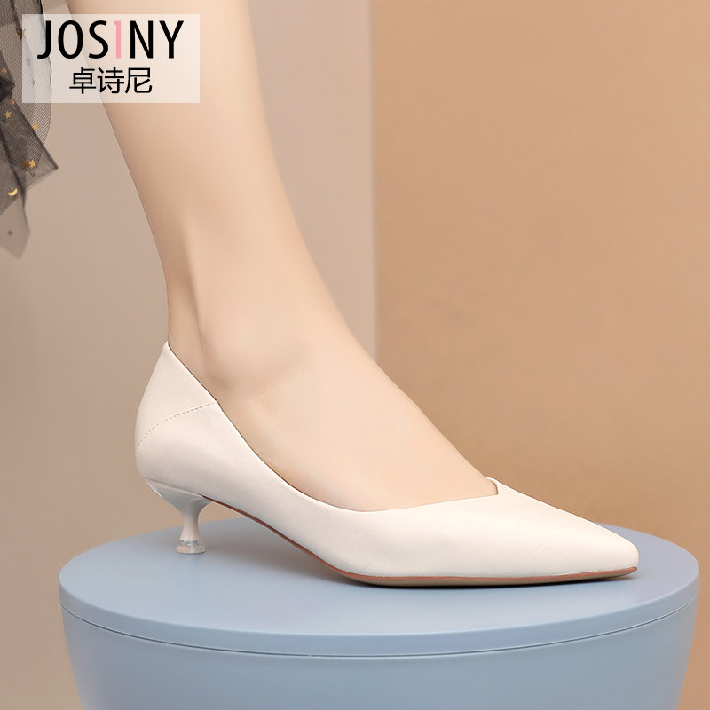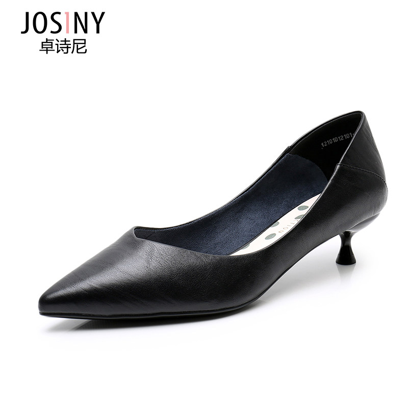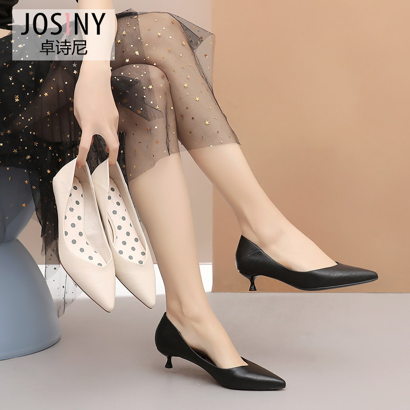 Zhuoshini 2021 spring new bag shoes women's middle heel pointed Joker slim work shoes women's black thin heel women's shoes