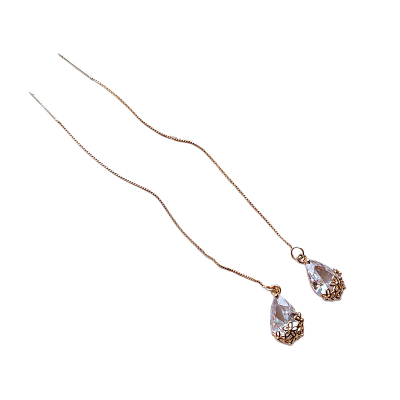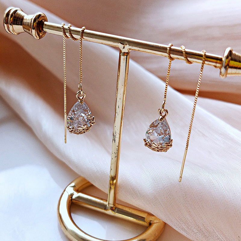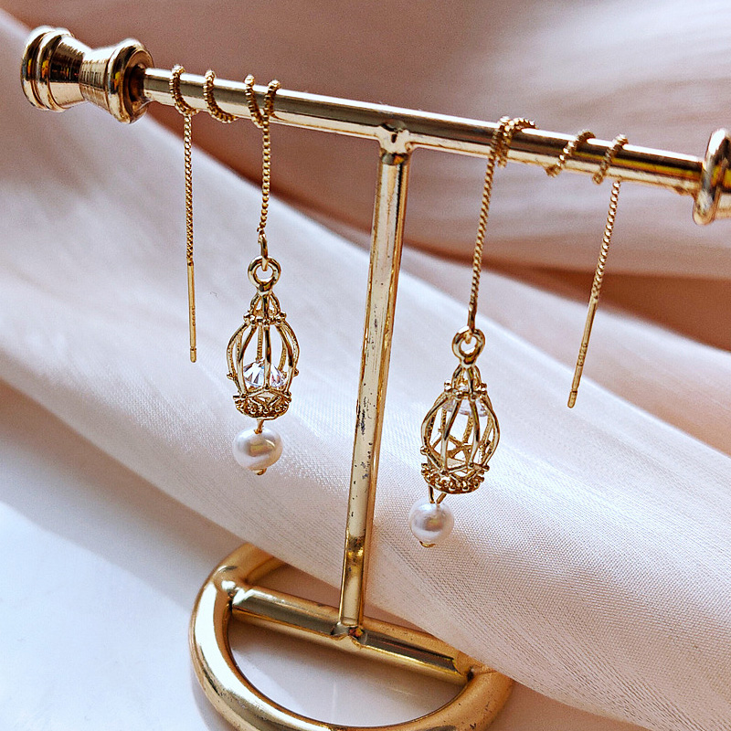Temperament long water drop ear line retro court baroque pearl zircon earrings simple and versatile braided cage earrings