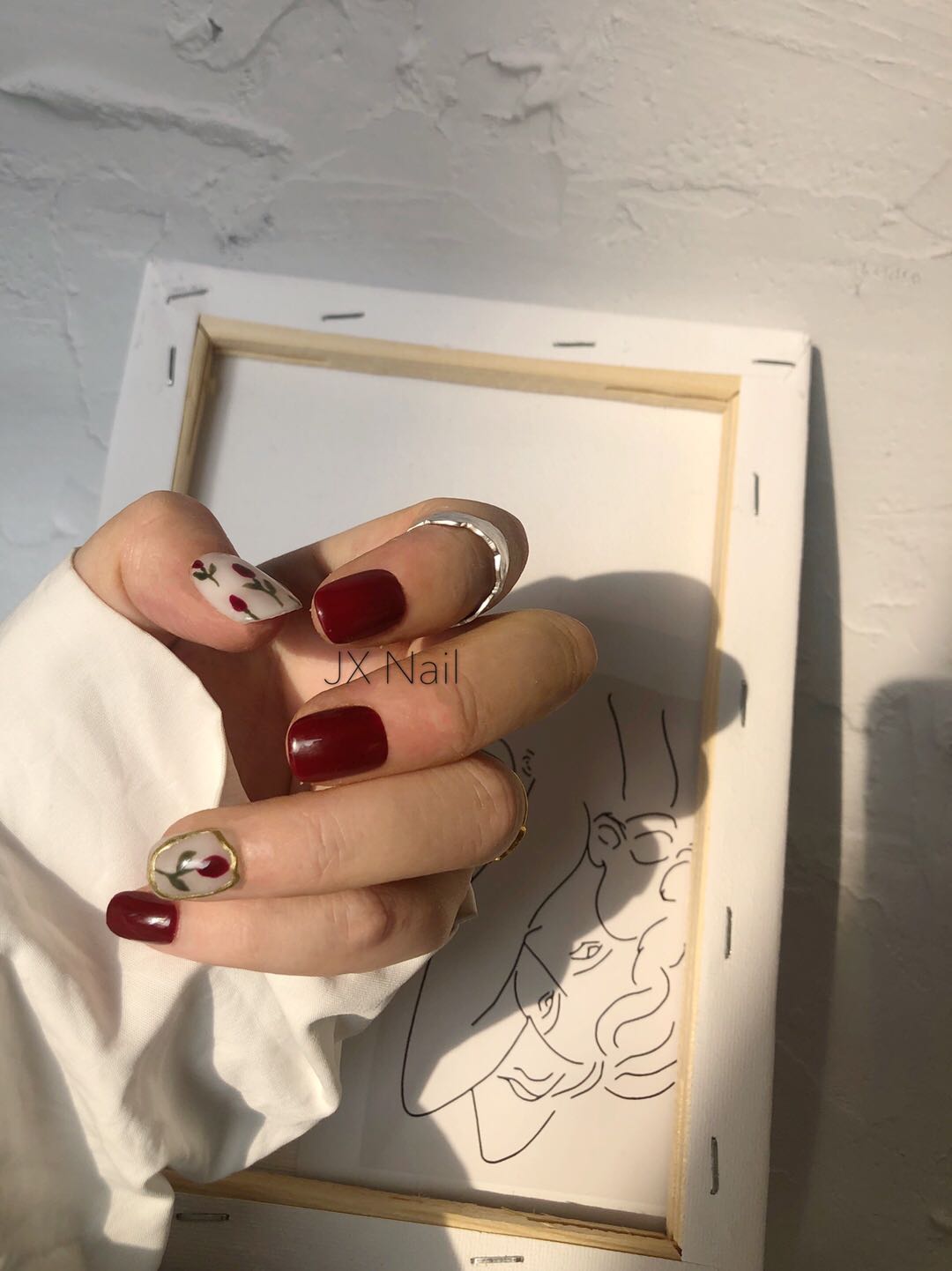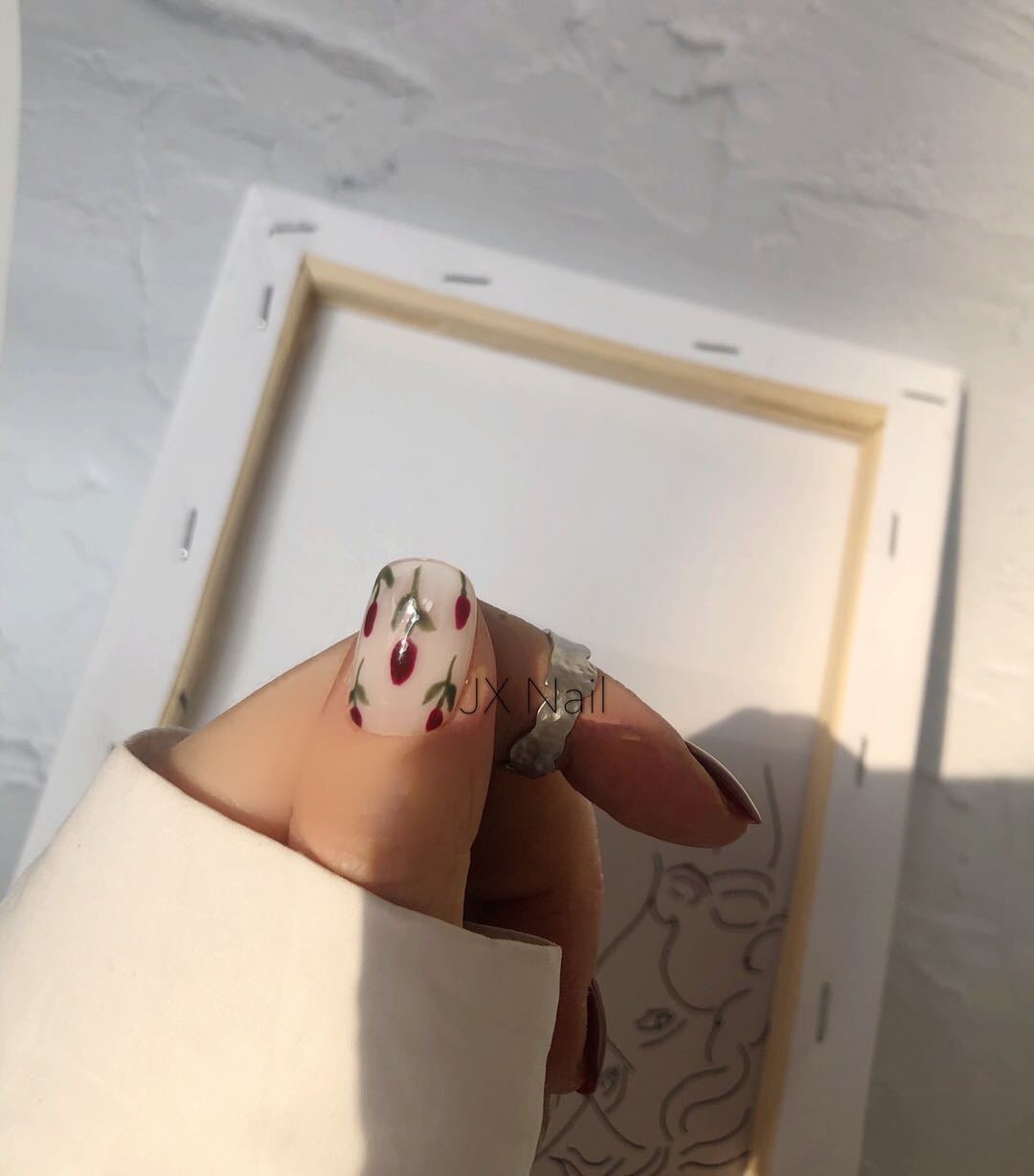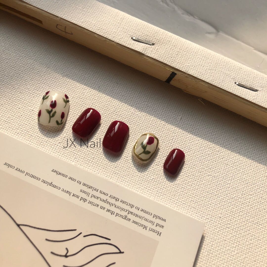 Nail finished finished handdrawn light armor red INS wearing nails whitening new long short fake nails