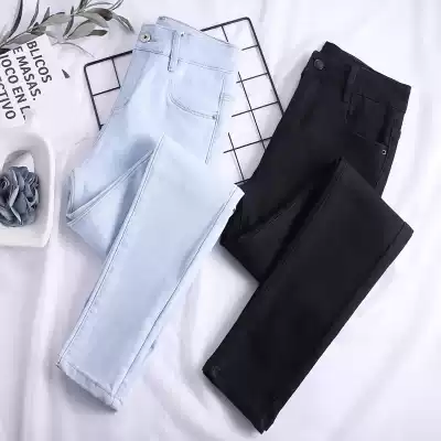 Autumn Korean black jeans women ankle-length pants high waist elastic tight body slim pipe pants pencil trousers