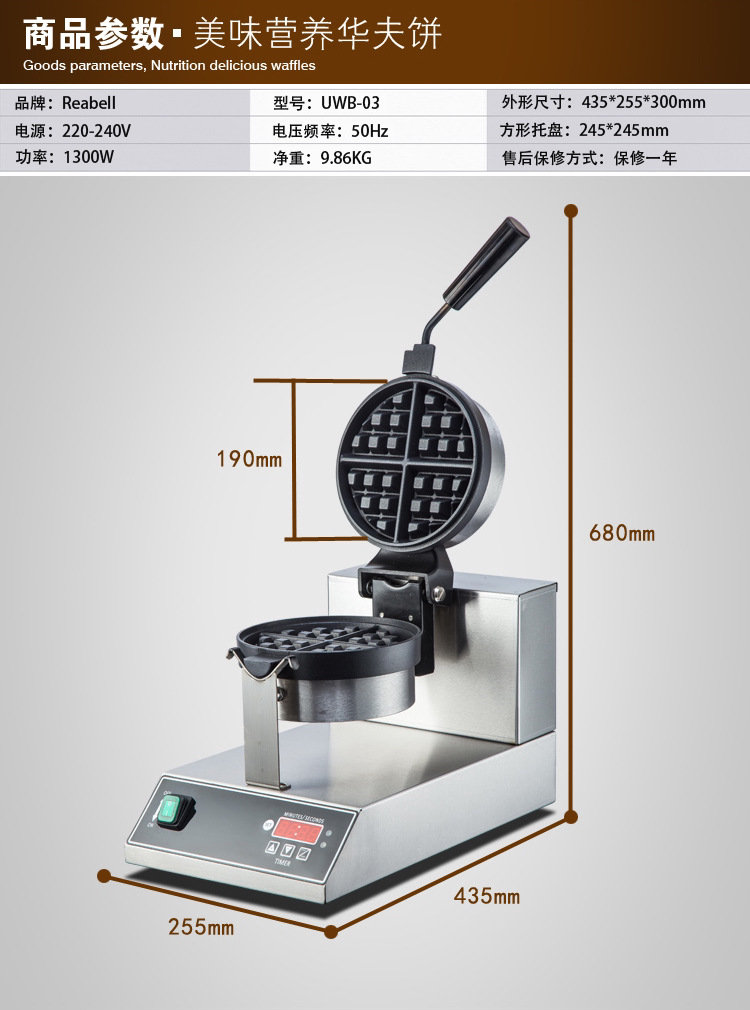 Xinyuehai UWB-03 waffle furnace commercial high-power rotary waffle machine milk tea snack bar electric pancake machine