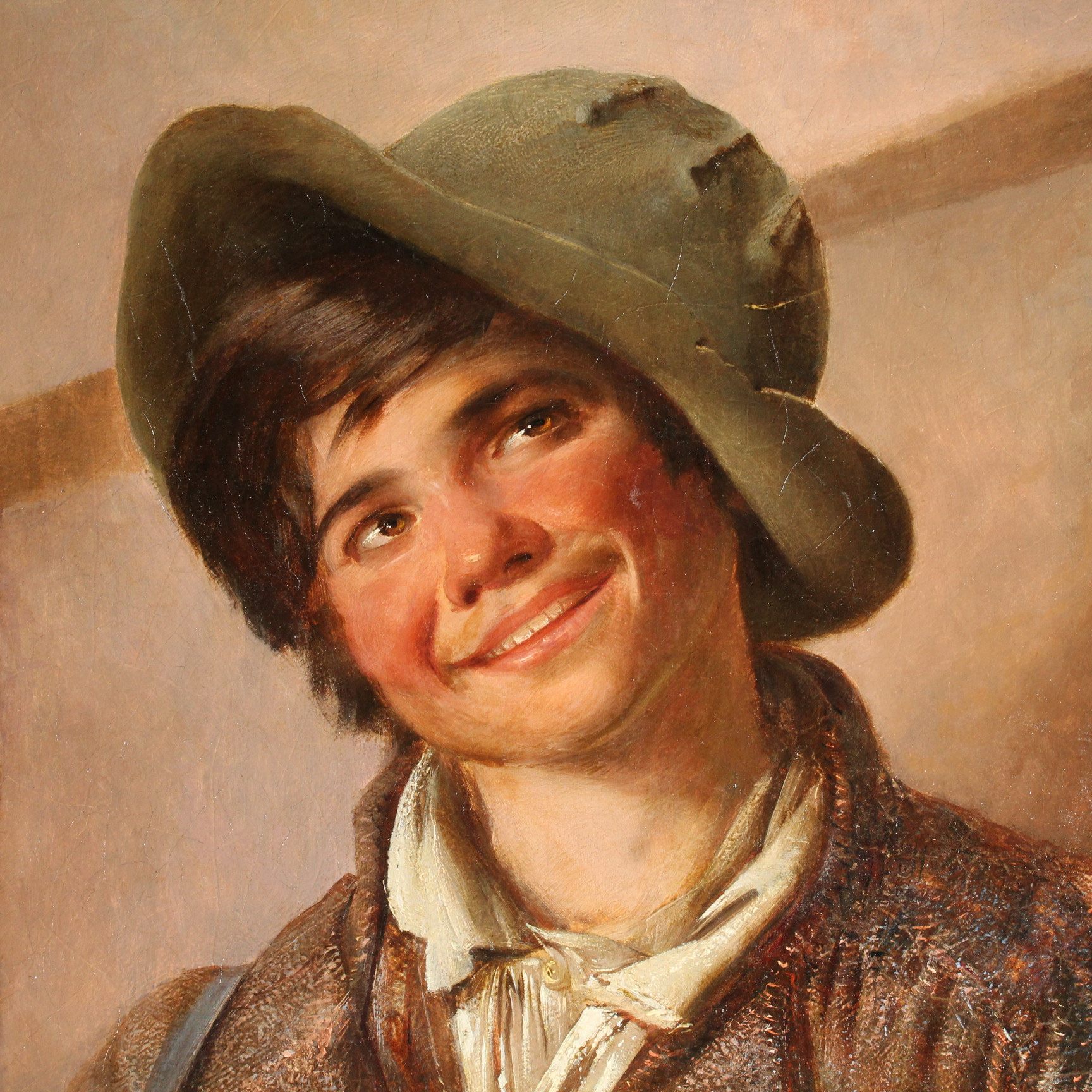 Royal Lion Fort European Antique Oil painting of 19th century character portrait signed William Huntley date