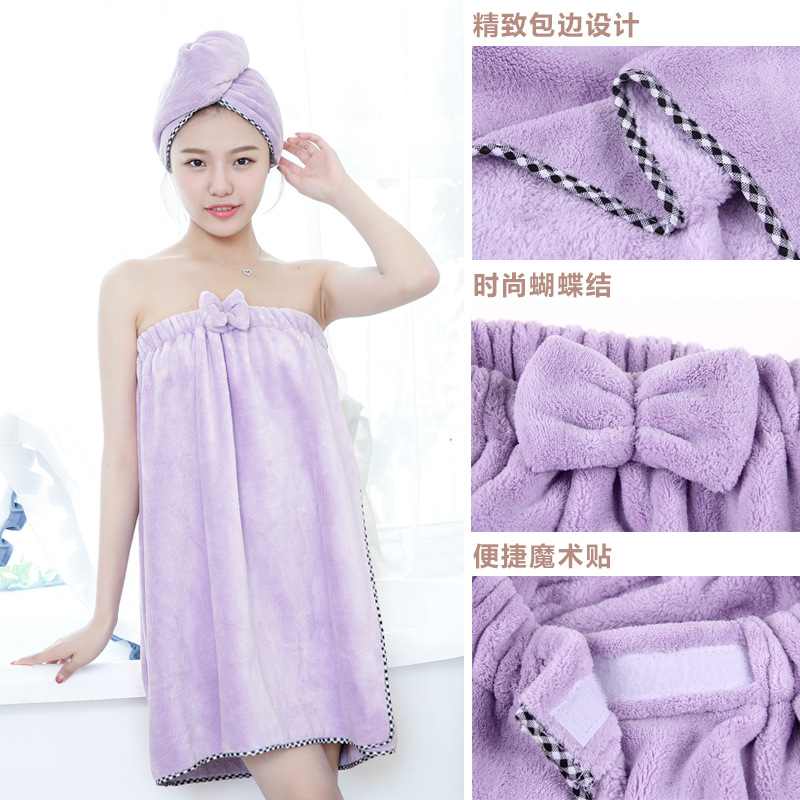 Bath towel female towel bath household adult student thickened water absorption plus size coral velvet cute bathrobe skirt suit