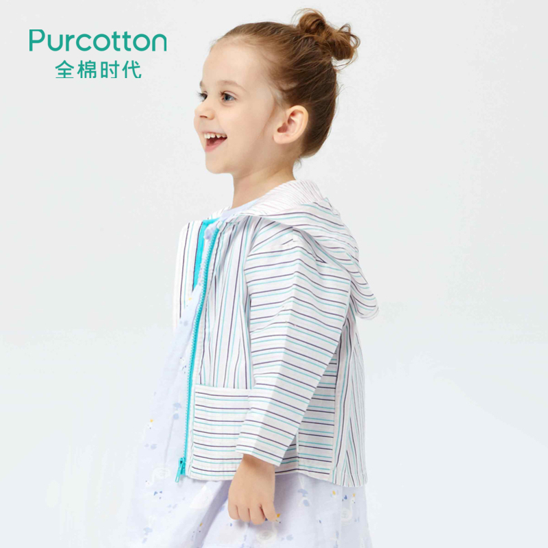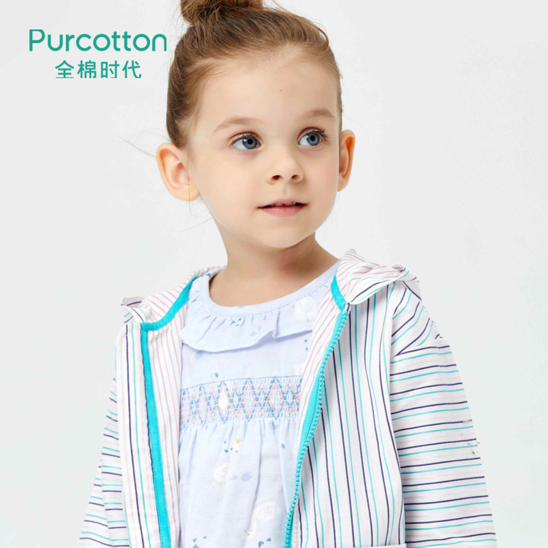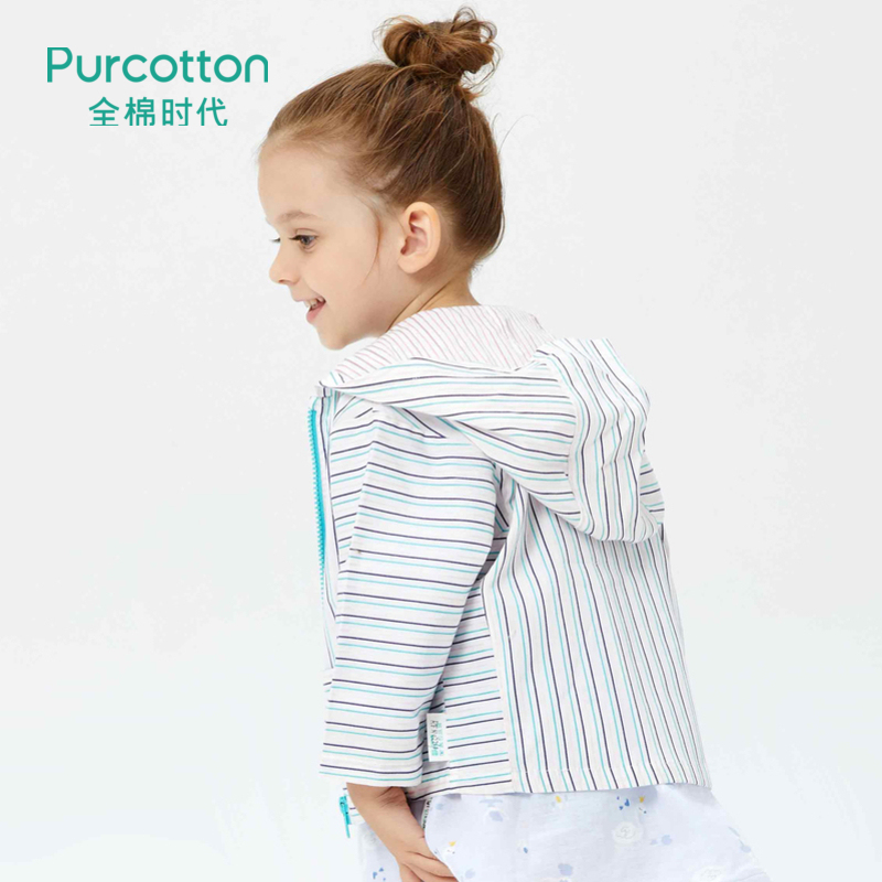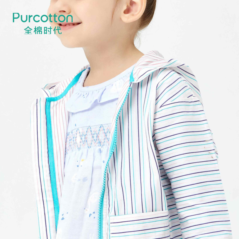 Full cotton era early spring thin sports coat fresh vitality striped girl cardigan hooded zipper jacket New