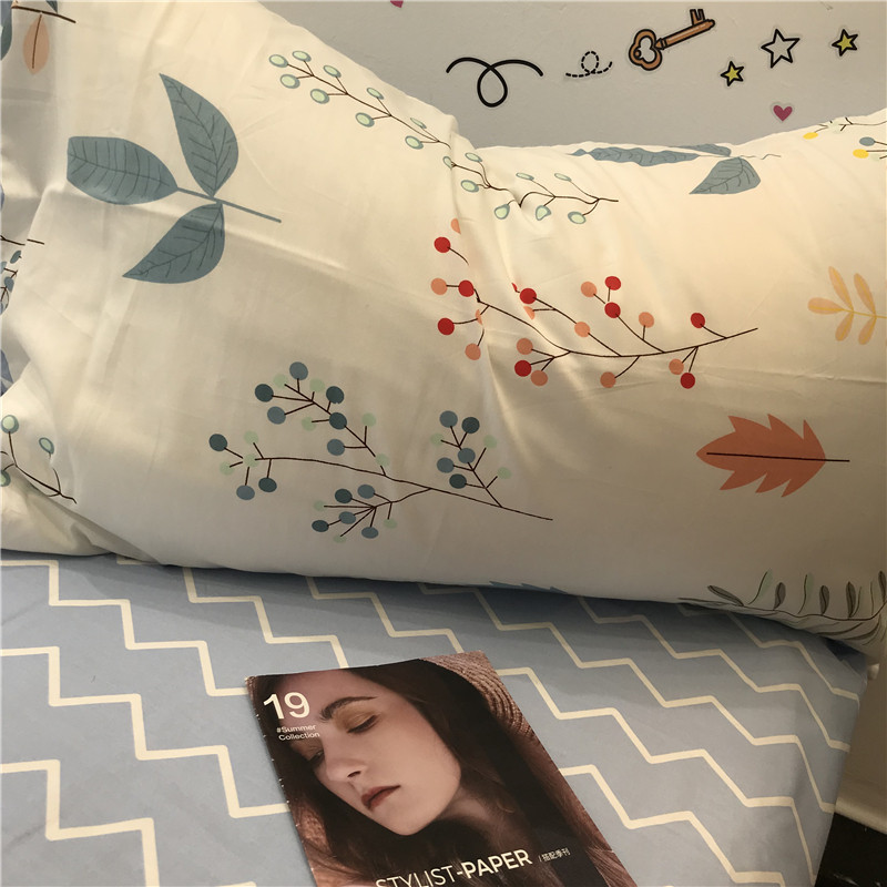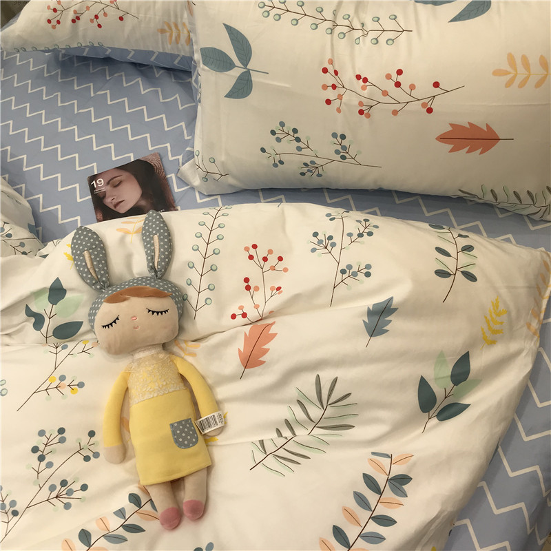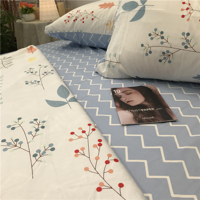 American pastoral small fresh set four - piece cotton pure cotton 1 5m1 8 m simple blue wave wave sheet