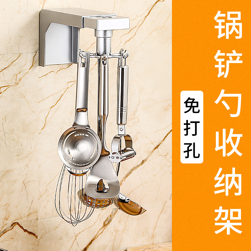 Rotary non-perforated storage rack hook Kitchen supplies Wall-mounted shelf Spatula spoon telescopic hanger artifact