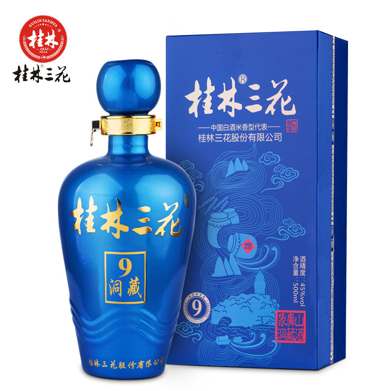 Guilin Sanhua Wine 9 Years Cave Tibetan 45 Degree Liquor Gift Box Highly Rice-flavored Liquor Grain Wine Guangxi Specialty