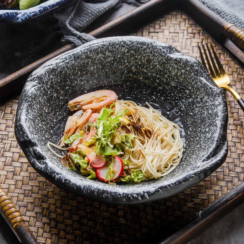Creative Irregular Ceramic Bowl Large Code Thickened Deep Bowl Fruit Salad Bowl Soup Noodle Bowl Linen Hot Bowl Restaurant Commercial-Taobao
