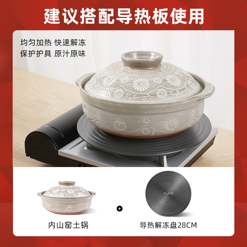 Neishan Kiln No. 9 (3L) No. 9 + Soup Spoon + Anti-Scald Cap (2pcs) + Thermal Insulation Pad No. 9 + Thaw heat transfer plate 28cm