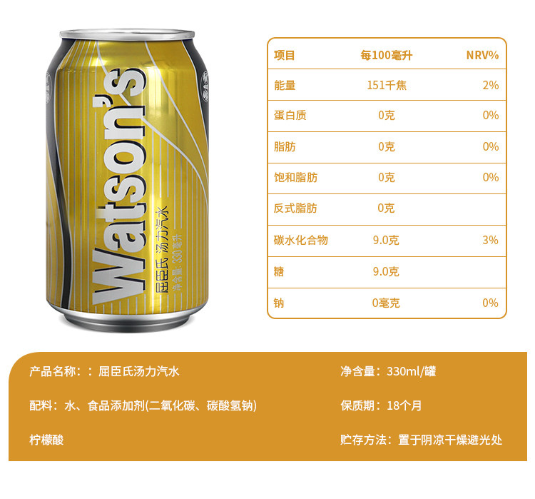 Cuchen's Soup Force Water Watsons Soda soda 330ml * 24 bottles of whole box with cocktail seasoning Drinking water