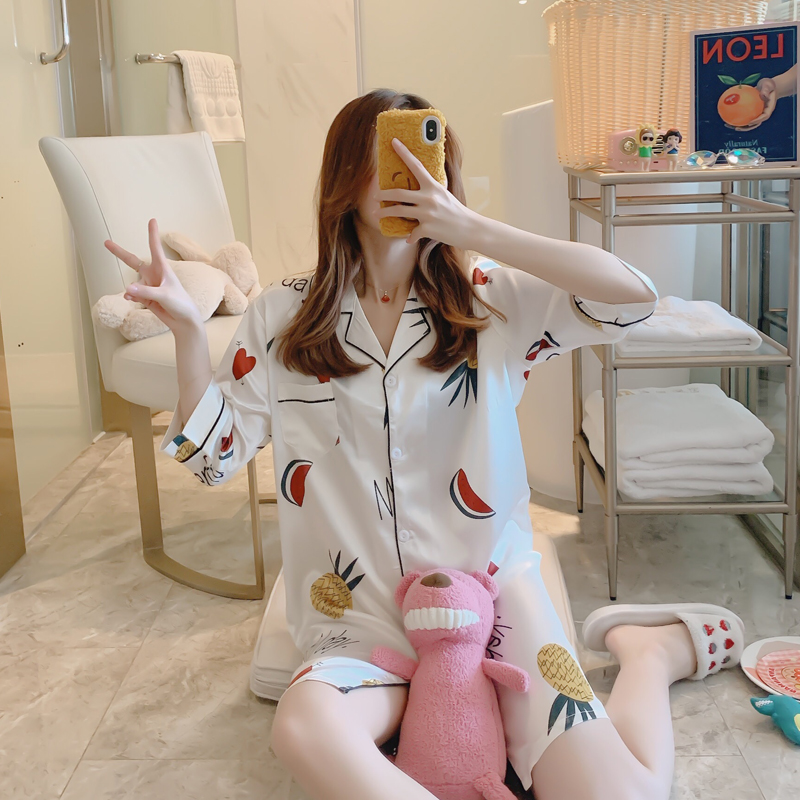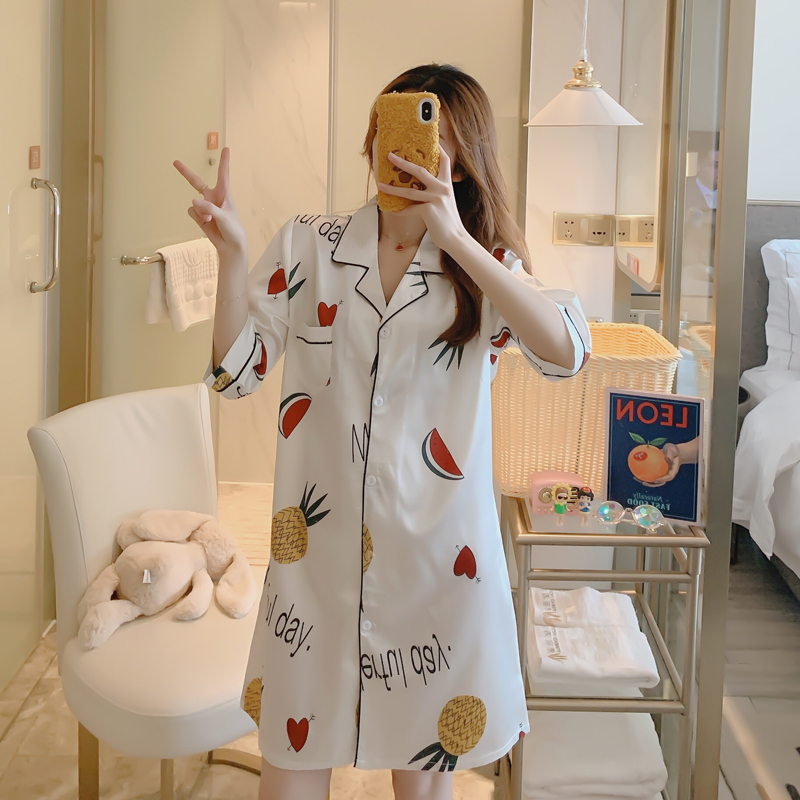 Sleepwear Woman Summer Ice Silk Short Sleeve Sexy Sleeping Dress Korean Version Fresh sweet and cute student thin Genuine Silk Home Conserved