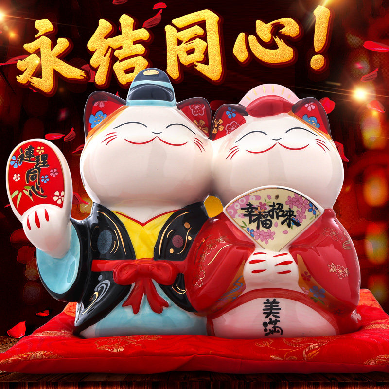 Creative Wedding Gift Tricks Cat Happiness Strokes to Ceramics Big Numbers Wedding Gifts Couple Dual Home Swing-Taobao