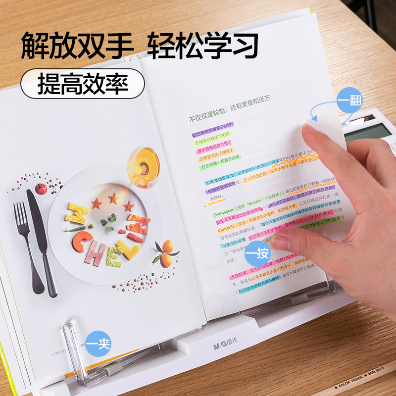 () Morning light stationery Jane series reading rack Primary school student reading rack Children's sitting corrector Adjustable book clip extendable tablet PC rack ABS917A8