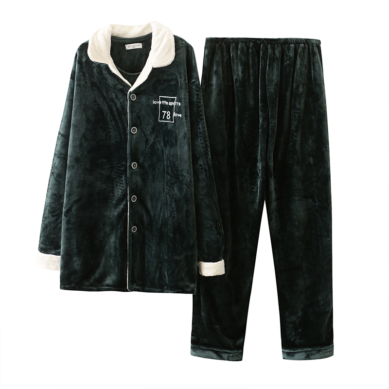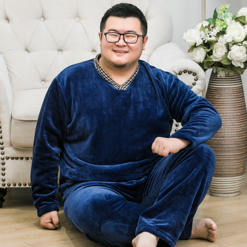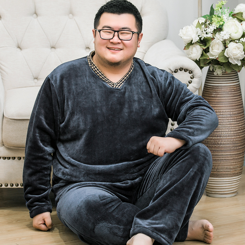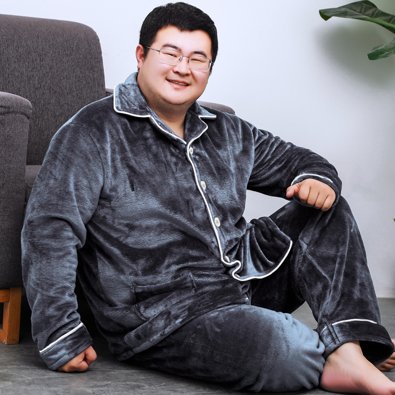 Plus fertilizer plus size thick pajamas men warm coral fat flannel long-sleeved home clothes suit middle-aged and elderly