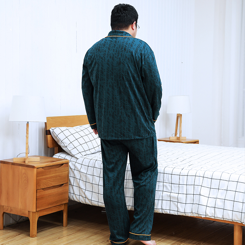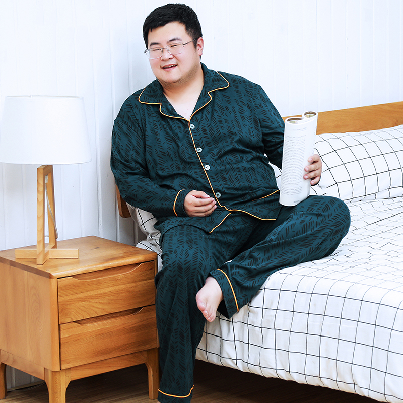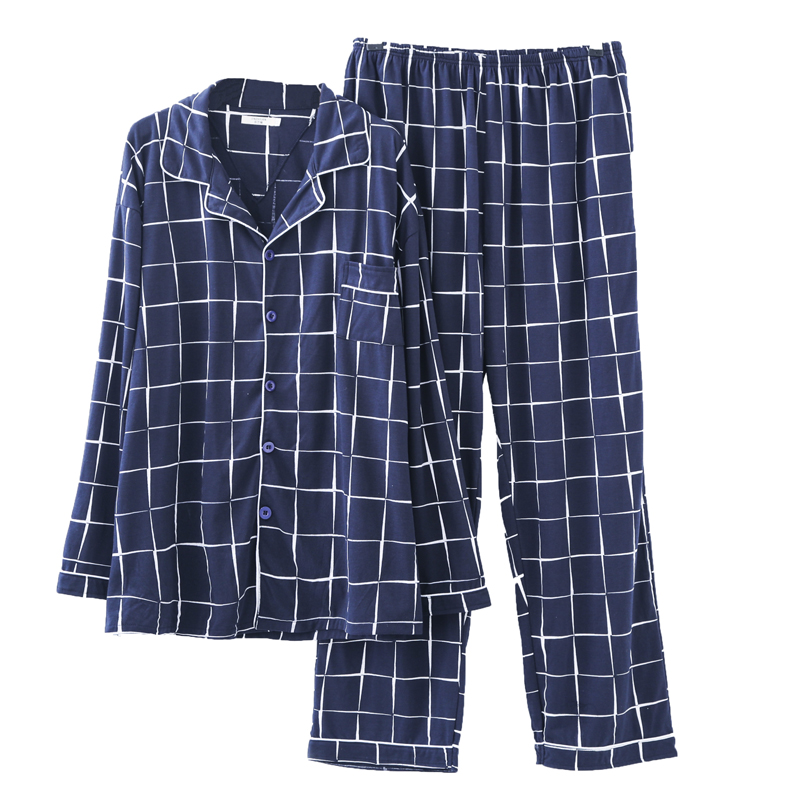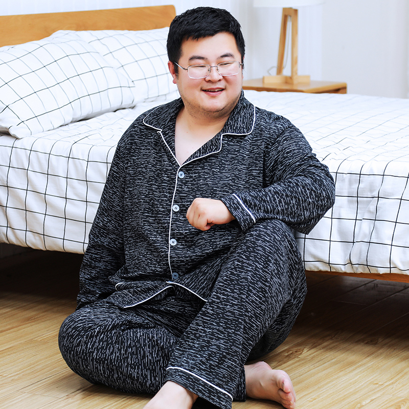 Spring and autumn season Gats up overweight Sleeping Clothes Men's Long Sleeves Pure Cotton Fattener Loose Cardiovert Suits and Suit Minimalist Plaid