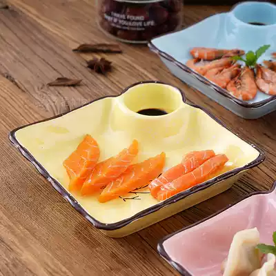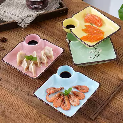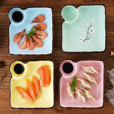 Dumpling plate with vinegar plate square plate fan-shaped deep plate plate plate household ceramic plate dumpling plate dumpling plate