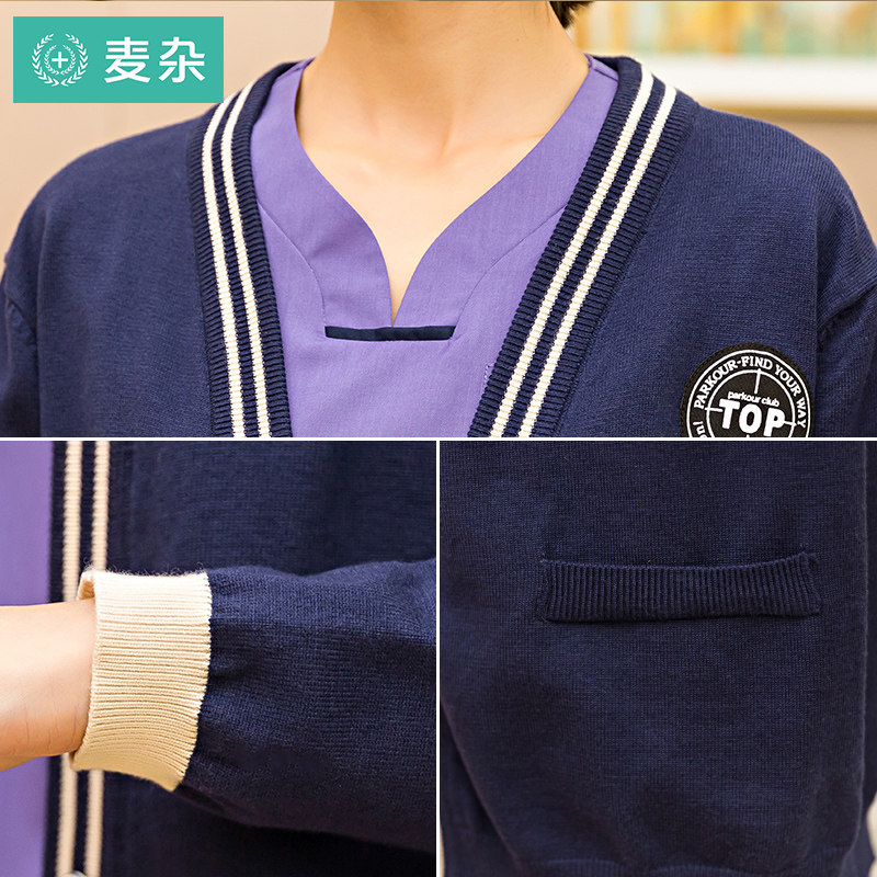 Nurse sweater large size nurse coat cardigan long-sleeved knitted sweater doctor overalls navy blue nurse sweater autumn and winter