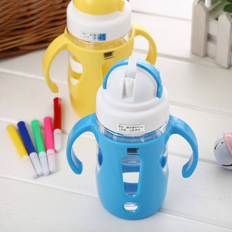 Baby School Drinking Cup Straws Cups Anti-Leaking Fall Infant Milk Bottle Kindergarten Holding Baby Bag Handle Dual-use Children Drinking Cup
