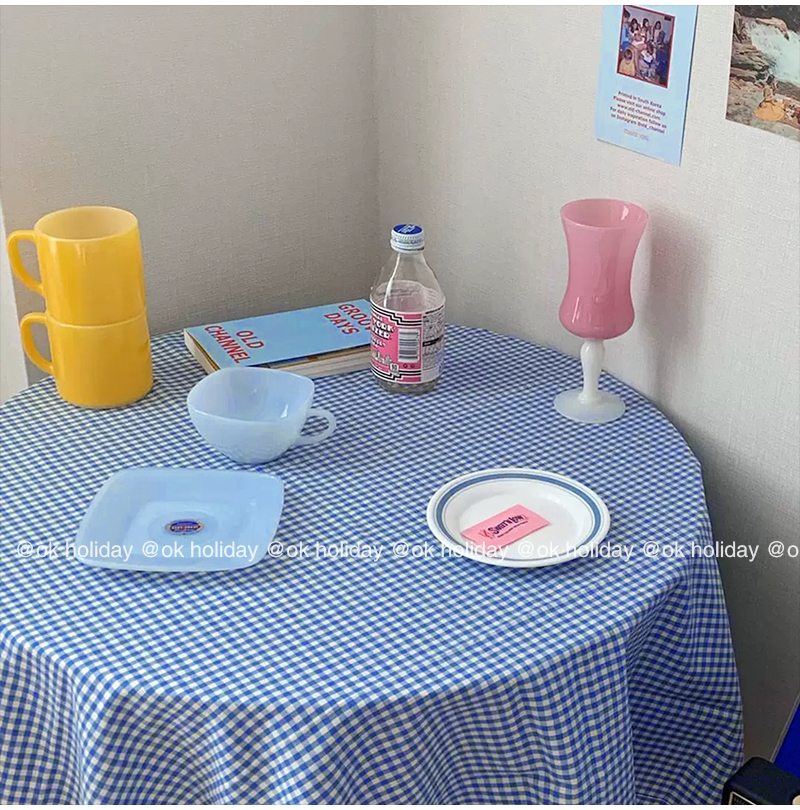 ok * Korean wind ins and cotton numb retro blue plaid table cloth girl dorm desk cloth picnic cloth room decoration