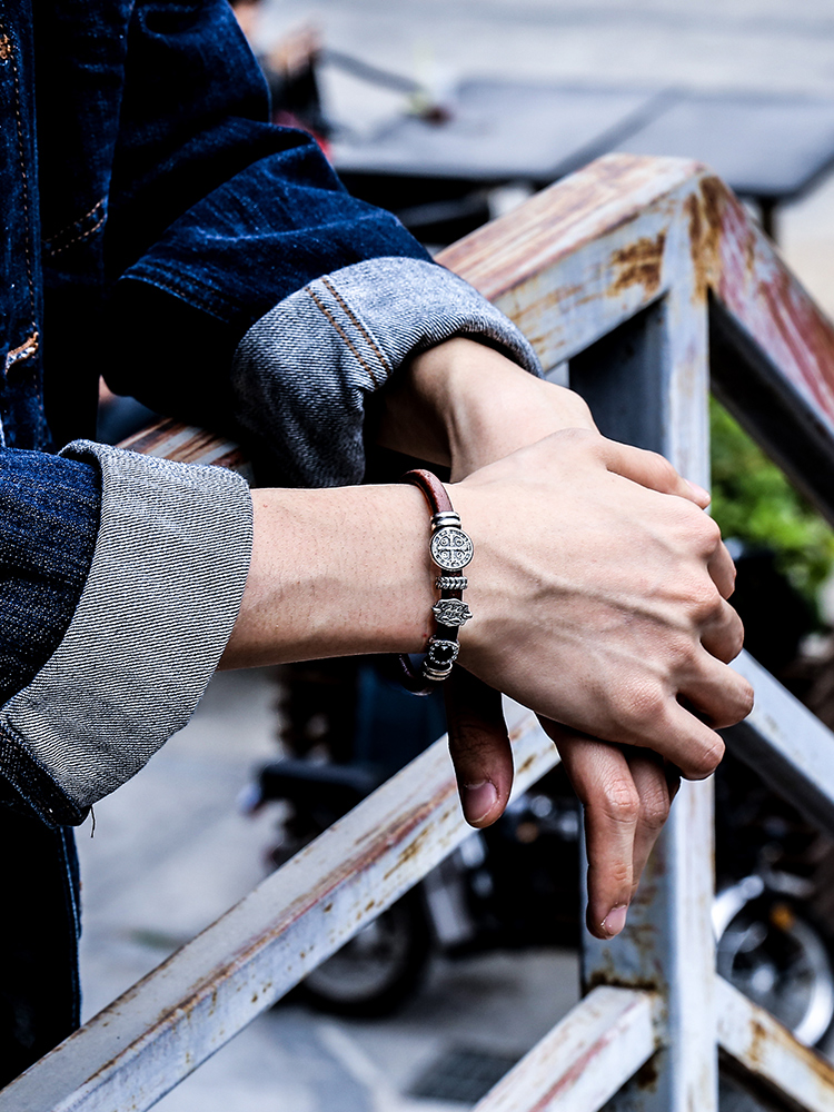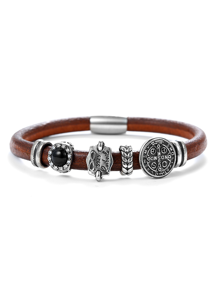 Ruibeila Leather Hand String 925 Silver Retro Bracelet Men's Trend Minor Cowhide Couple Bracelet Valentine's Day Gift