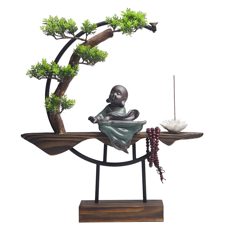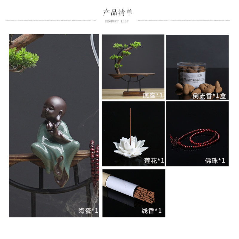 New Chinese-style Zen ornaments small monk backflow incense burner home living room desk tea room porch welcome guests soft decoration