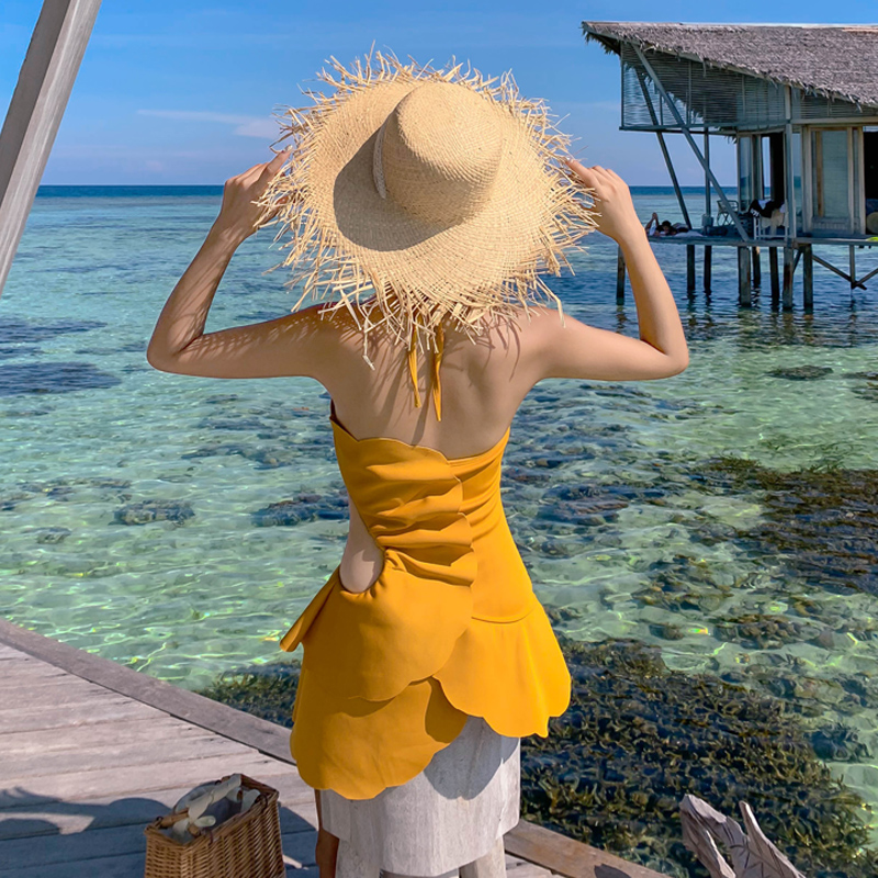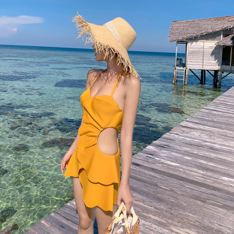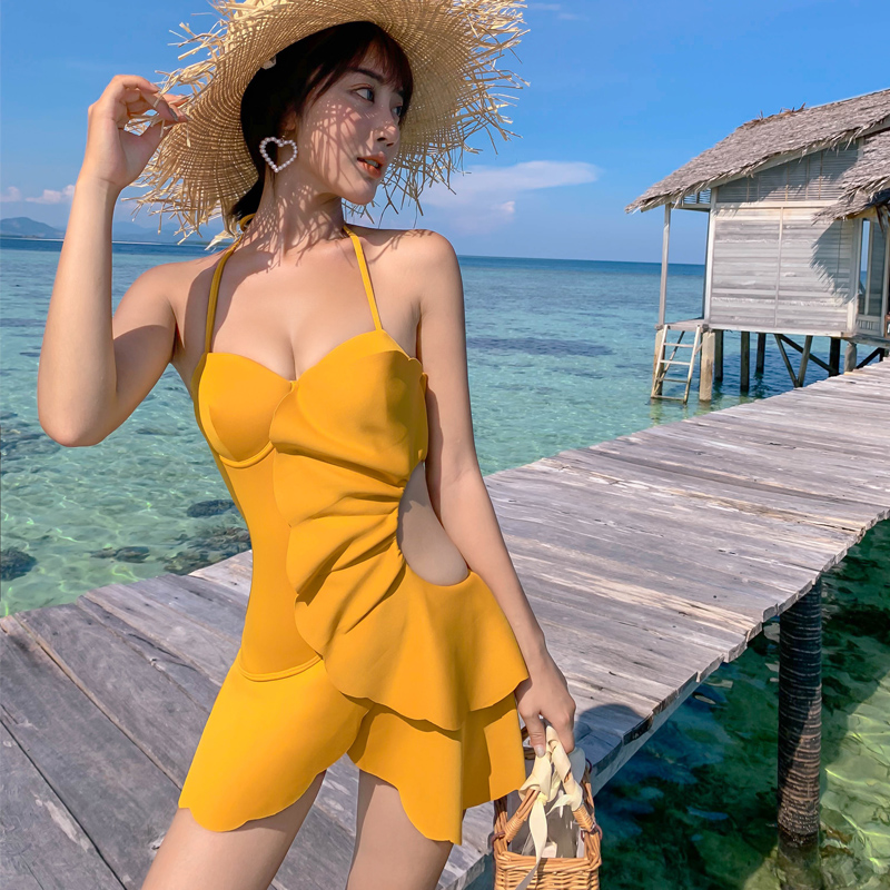 2021 new swimsuit women's summer sexy one-piece bikini Korea ins belly cover thin suspenders conservative swimming suit