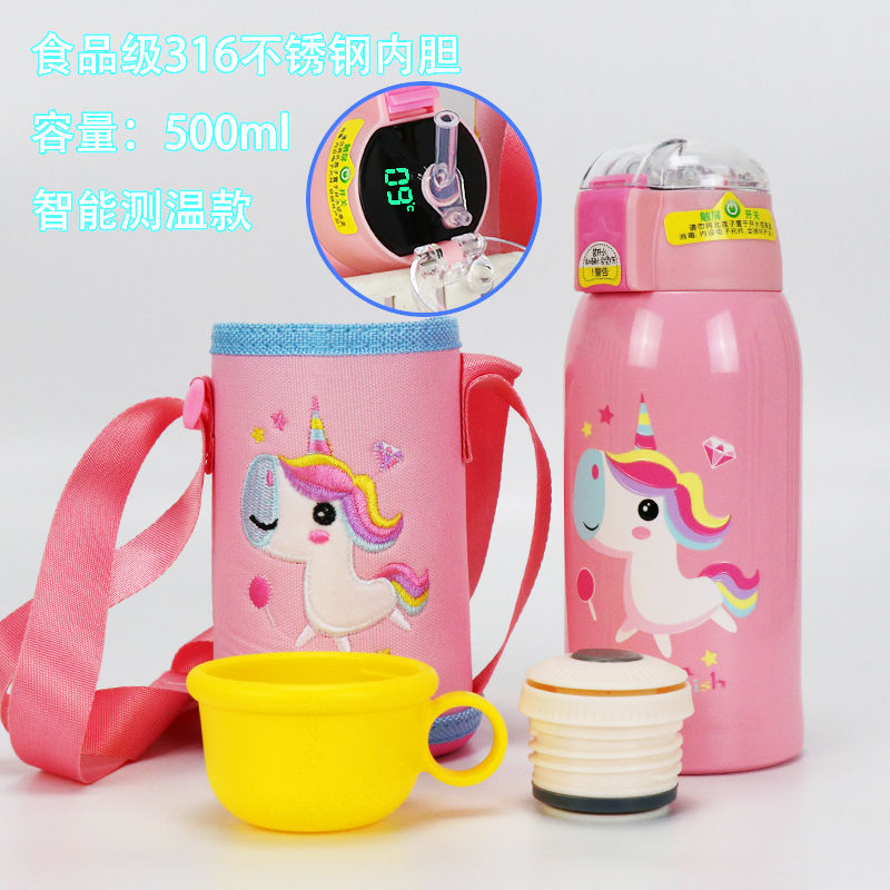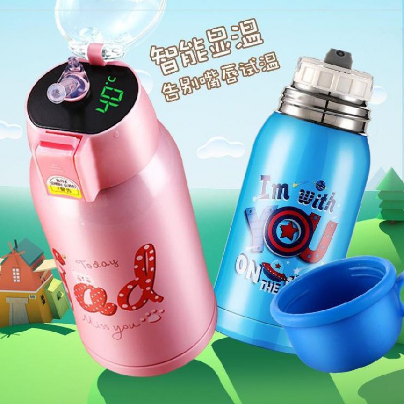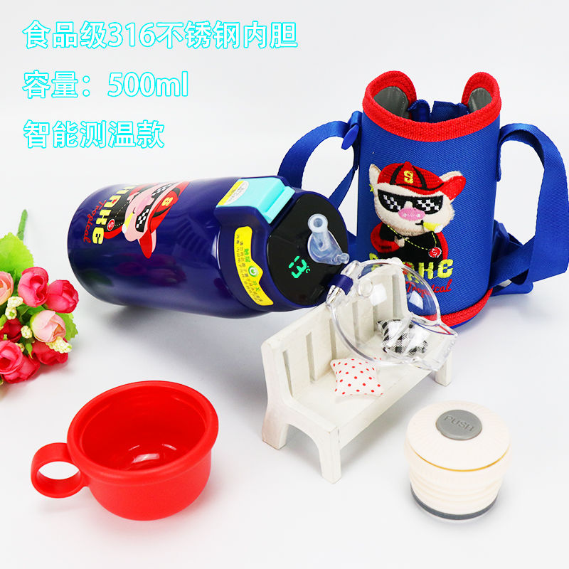 Children's thermos cup intelligent temperature display 316 stainless steel vacuum straw cover drinking bottle Student drinking cup