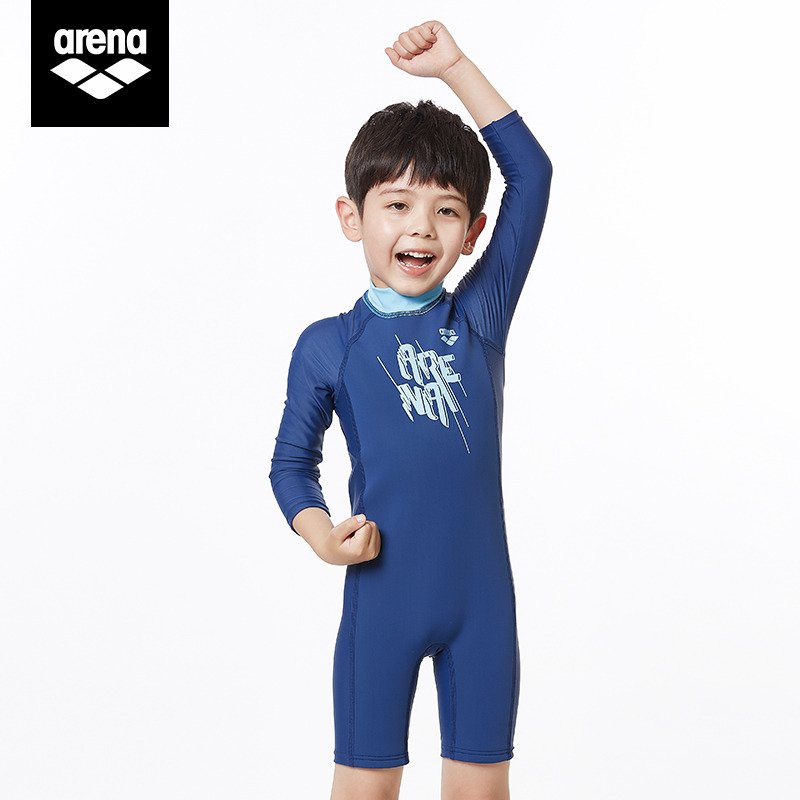 arena Arena Kids One-Piece Long Sleeves Angled Swimsuit Print Boys and Girls Sun Protection Comfort KSS0306UK