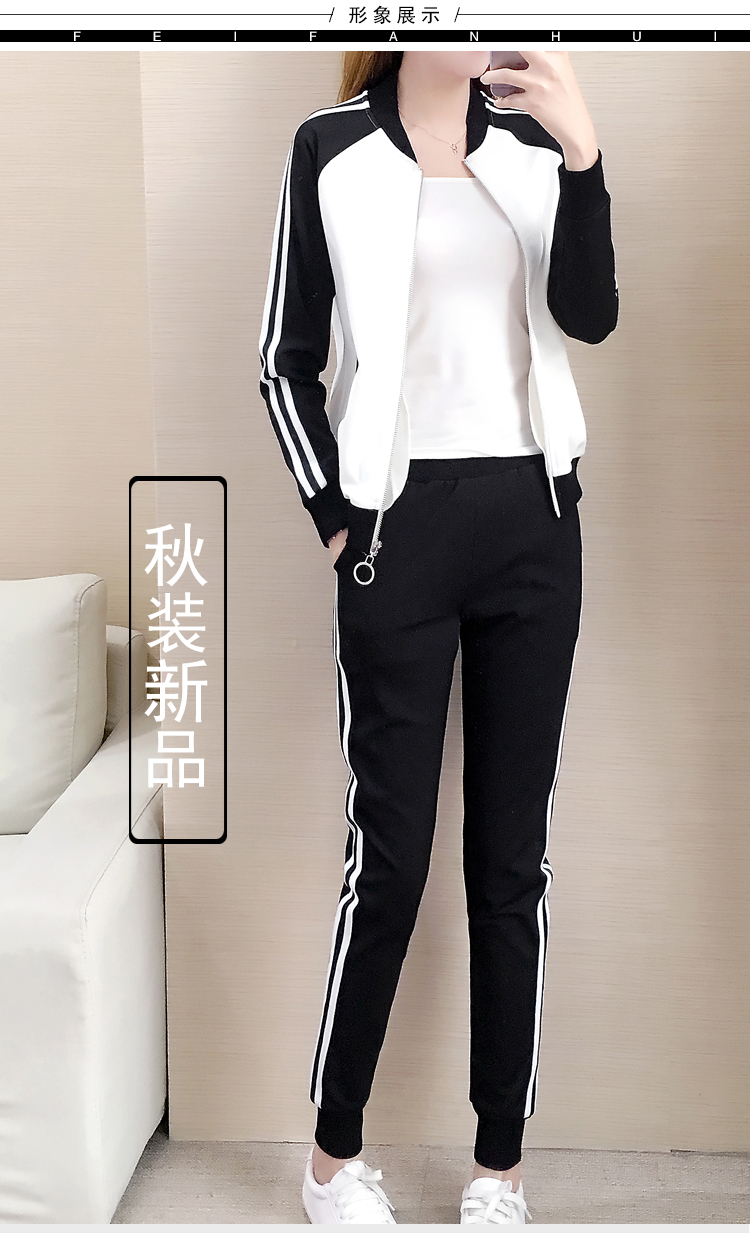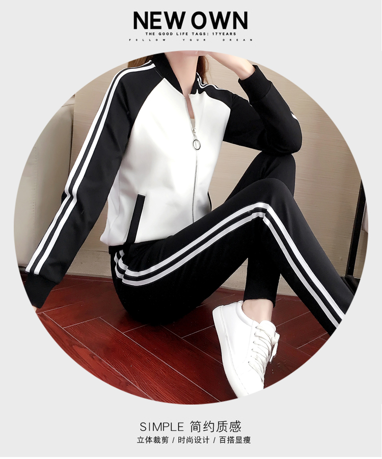 Brand name brand spring and autumn leisure clover suit cotton sports clothes cardigan women's group buying fashion breathable white tide