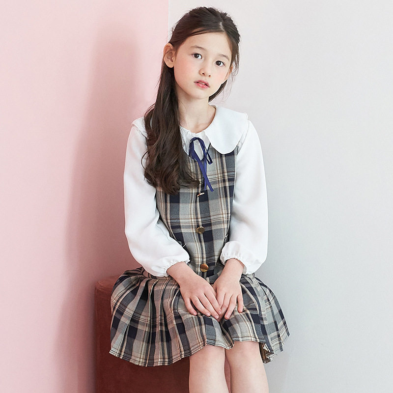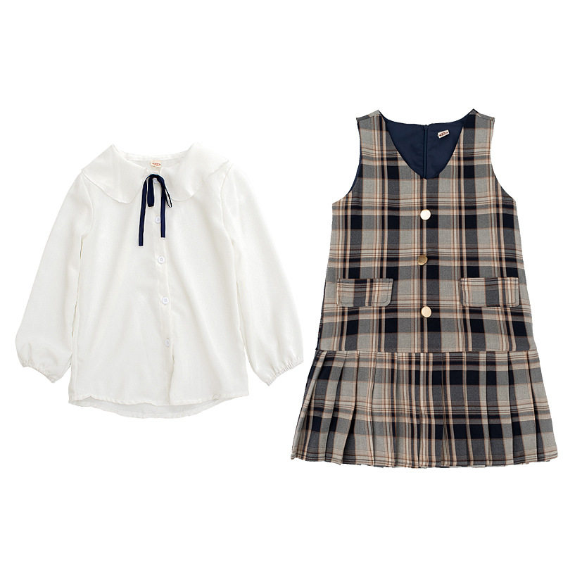Girl's foreign dress suit 2020 spring new children CUHK Snowy Snowspun blouse Plaid Vest Dress