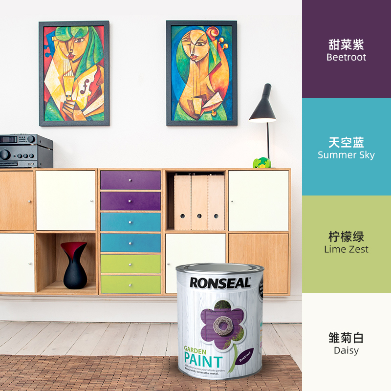 White Decade waterproof wood lacquered 750ML beetroot purple garden wood lacquered 750ML sky blue garden wood lacquered 750ML lemon green garden wood lacquered 750M