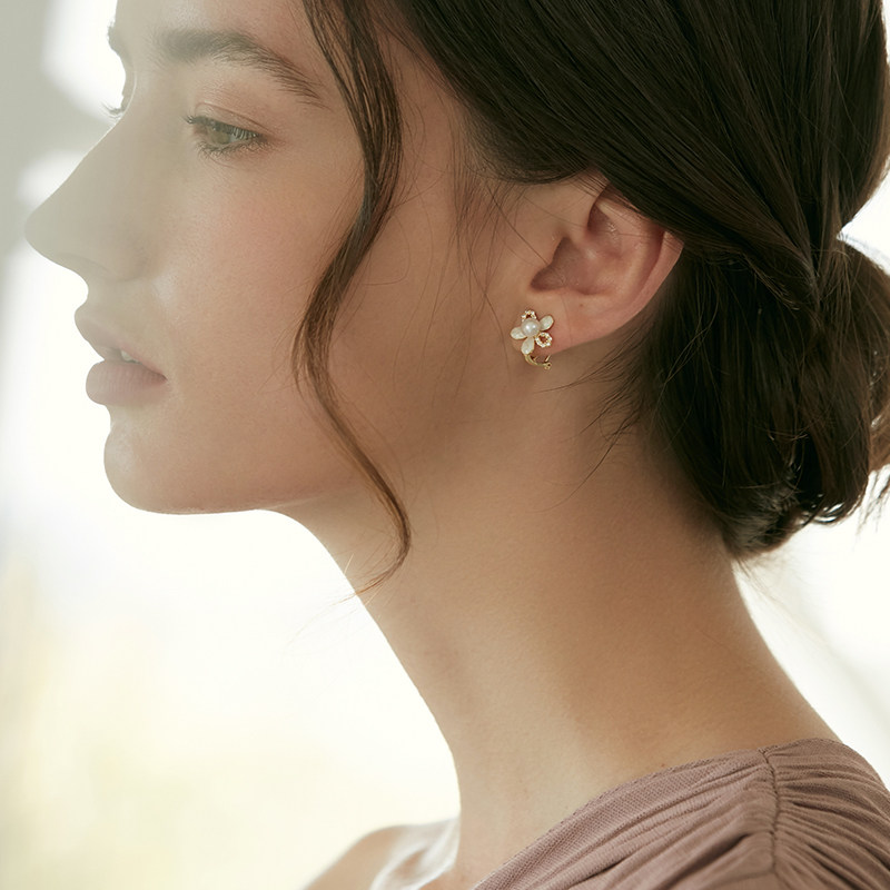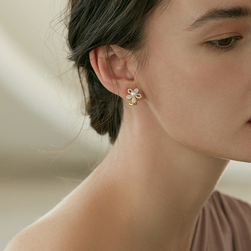 S925 Sterling Silver + Natural Freshwater Pearl + Natural Mother Of Pearl (Pair) (Ear Clip Without Ear Piercing)