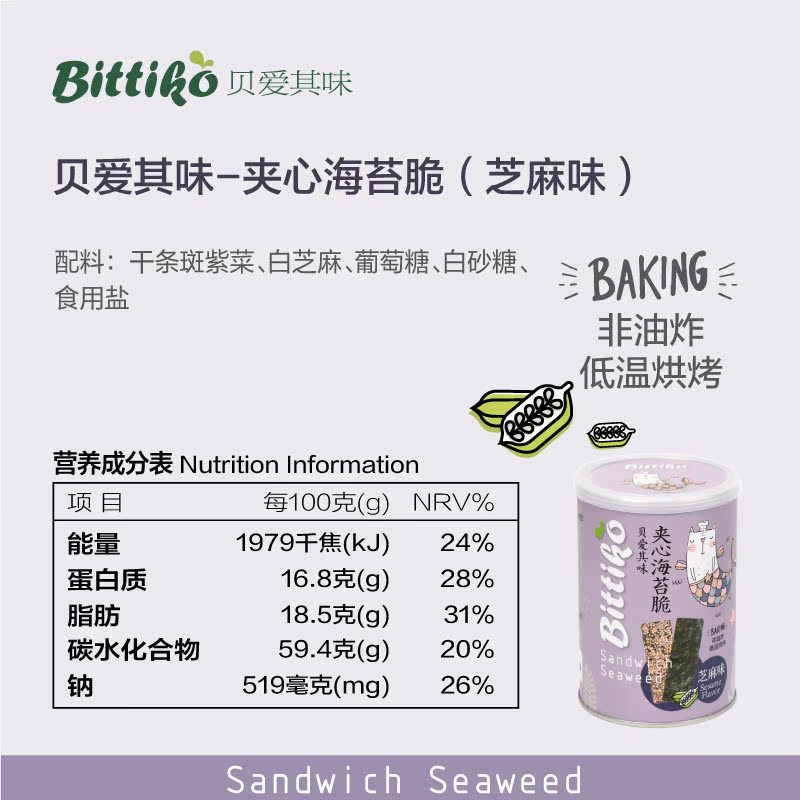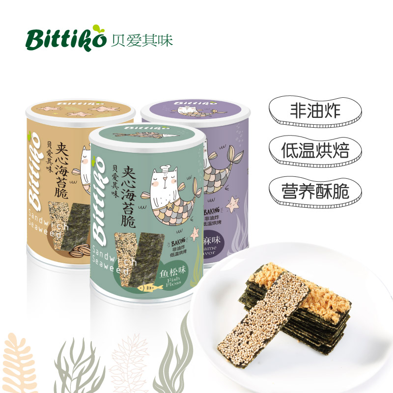 Beiai Qiwei children's snacks Ready-to-eat canned sesame seaweed slices Baby sandwich seaweed crisp (sesame flavor) 35g