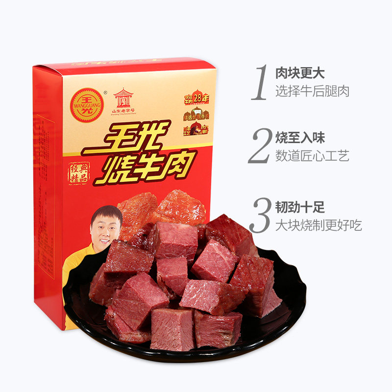 Wang Guang roast beef Shandong Heze specialty Vacuum-packed ready-to-eat spiced beef large pieces of meat hand-torn beef 168g