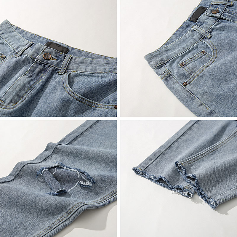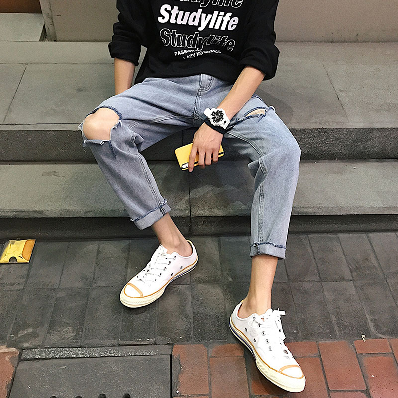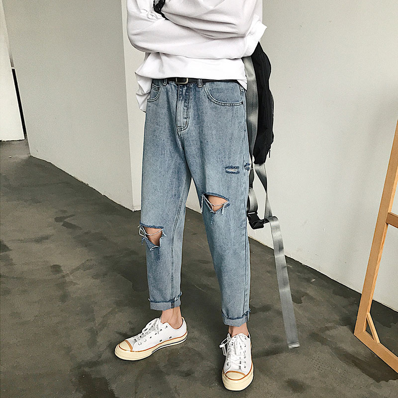 Spring and autumn ripped jeans men loose nine-point pants men's Korean version of the trend casual wild handsome denim pants