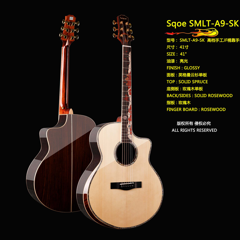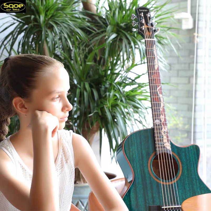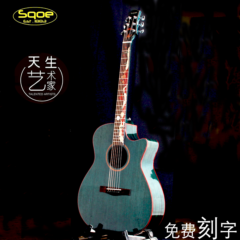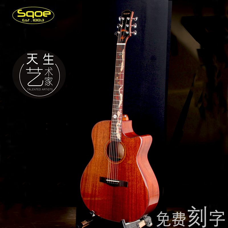 (Free lettering)Sqoe plus shock full veneer guitar 40 41 inch veneer 36 inch Desert camel men and women electric box