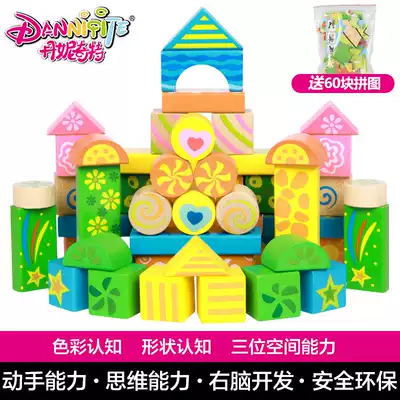 Denic puzzle brain boutique 50 children's building blocks wooden assembly assembly large particle multifunctional toy