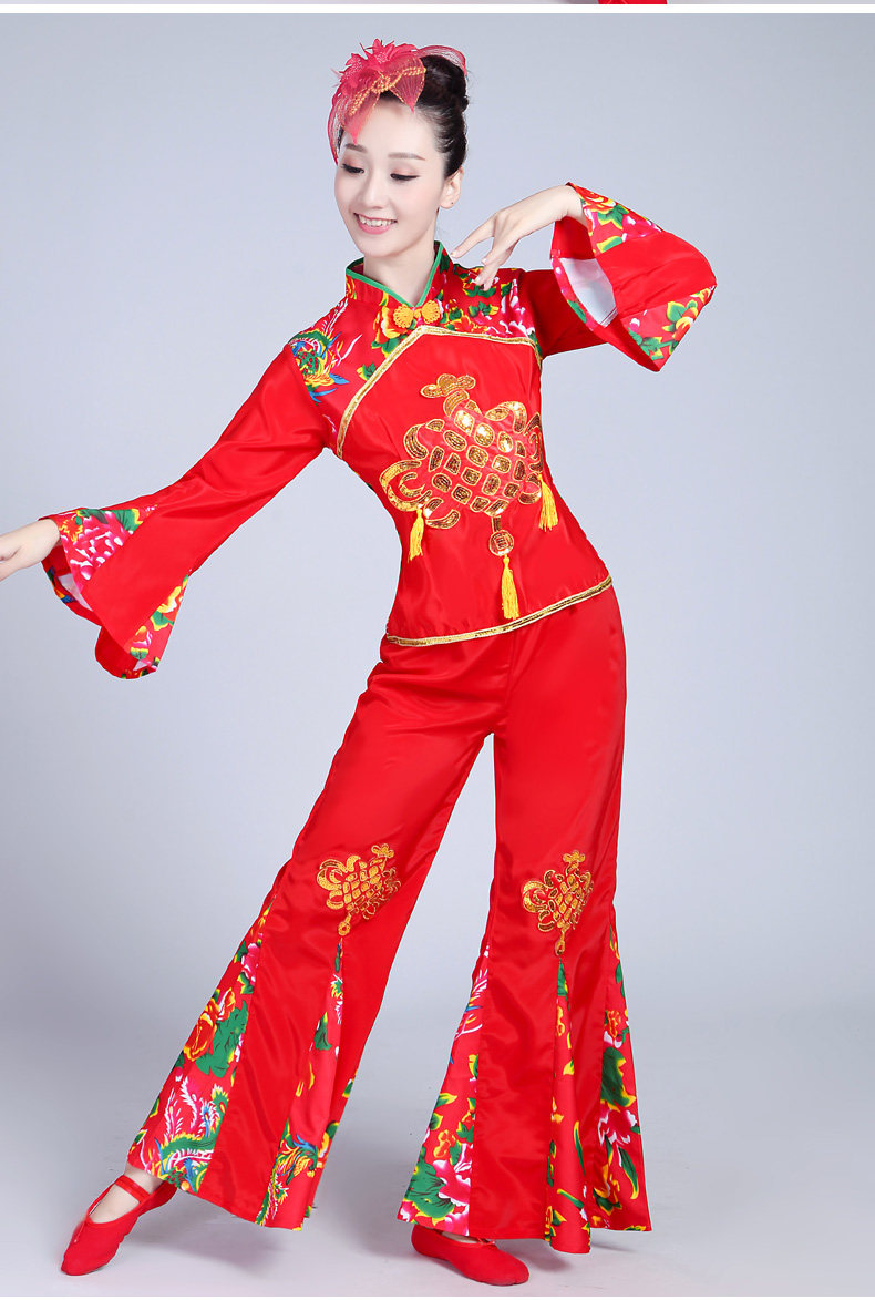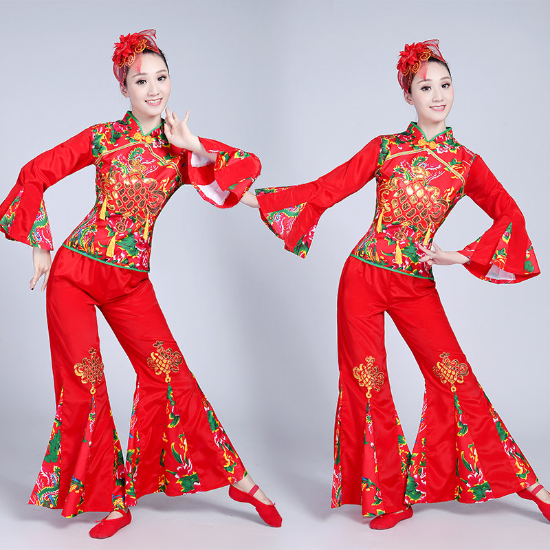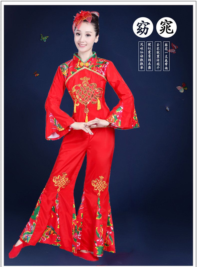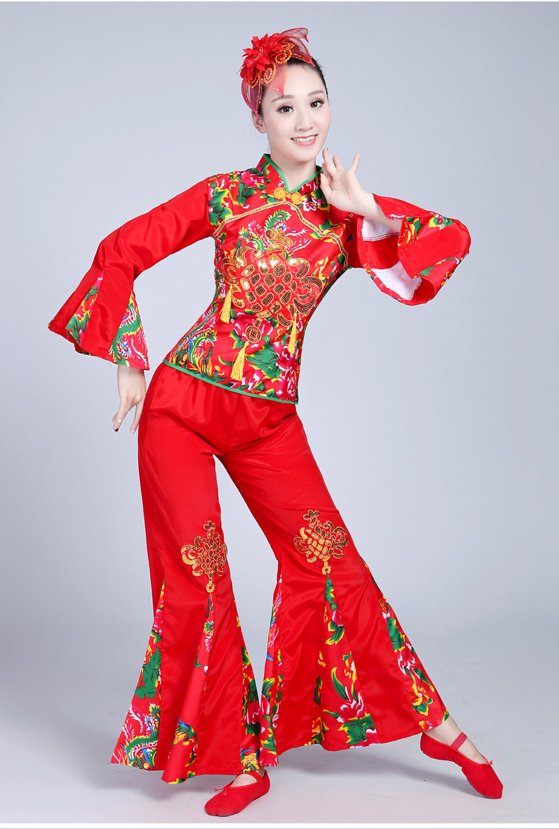 New adult Heqing 2nd person turns open door red ethnic costumes to serve in the Seedling Song Dance Performance and Waist Drum Dance