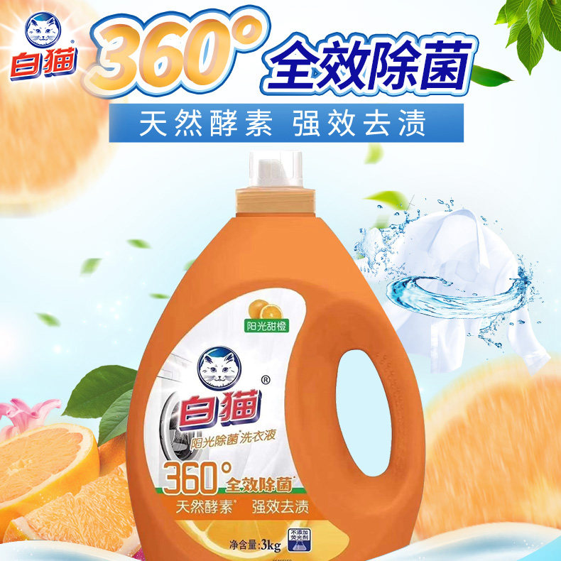 White cat sunshine other than bacteria laundry detergent 3kg natural enzyme strong effect to stain and kill sweet orange taste hand-washing machine versatile