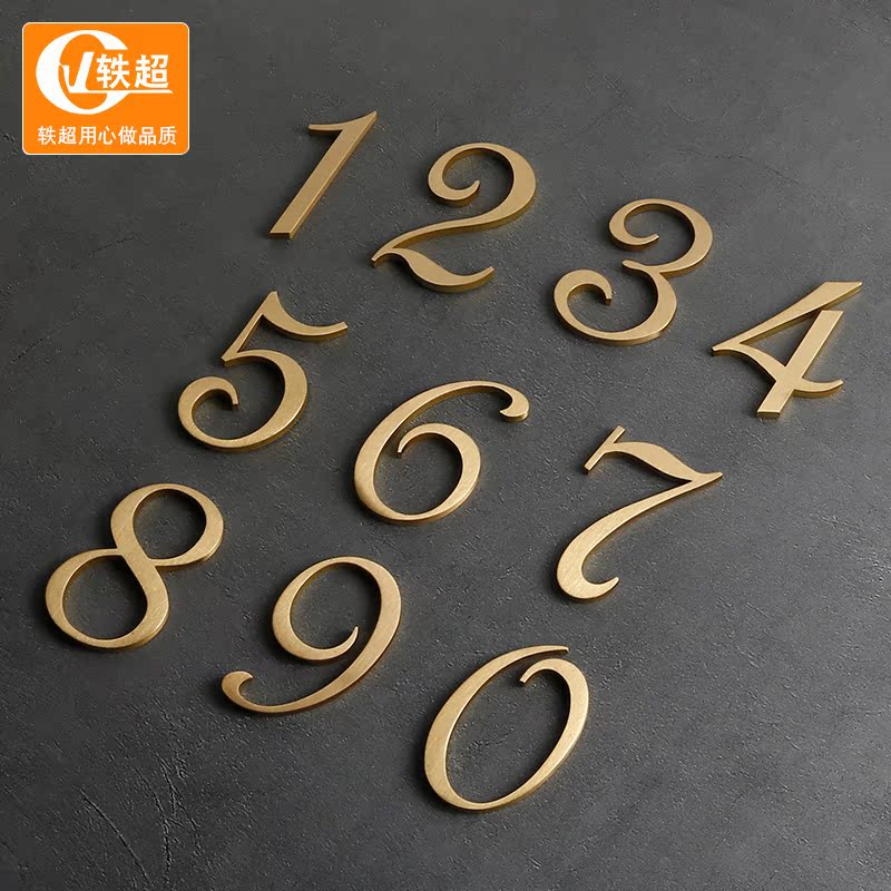 Nordic brass metal house number Pure Copper hotel bed and breakfast residential private room custom house number three-dimensional digital sticker