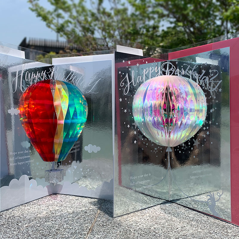 Japan New Creative Cellular Delicate Hot Air Balloon Shiny Pearl Sheet Solid Pop Birthday Greeting Cards With Envelopes