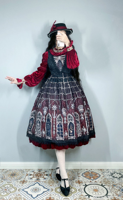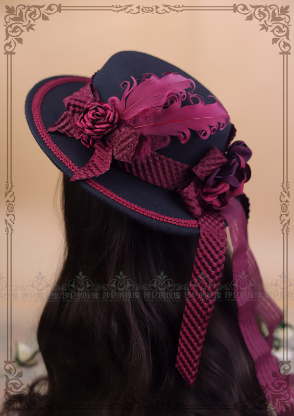 Original * Red Rosaceae Night * Classical Lolita Feather Bow Tie Flowers Courtesy of elegant ladies Wind