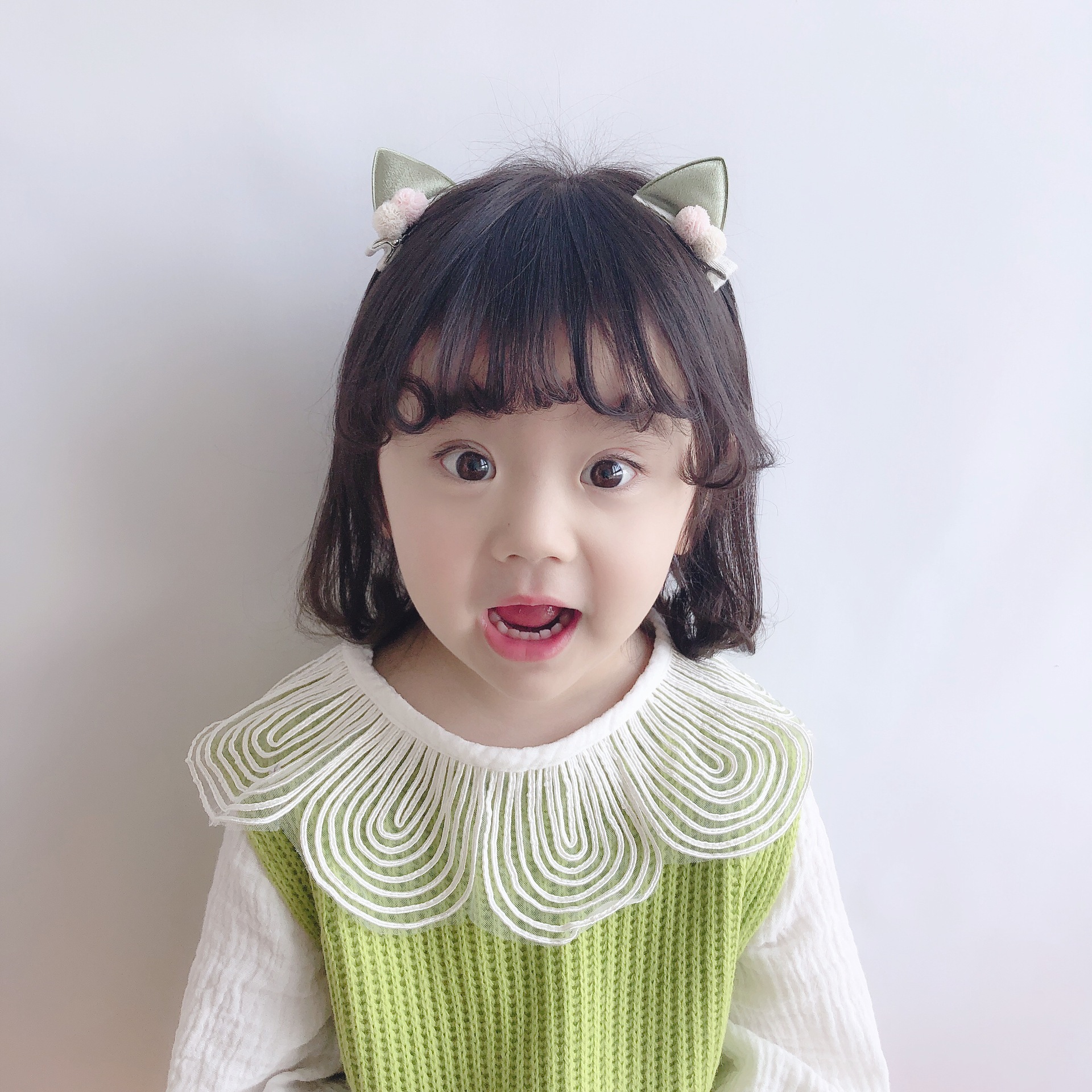 South Korea's new 100 hitch Pearlized Cloth Art Cat Ear Child to clip press clip hair clip hair clip haircut headwear