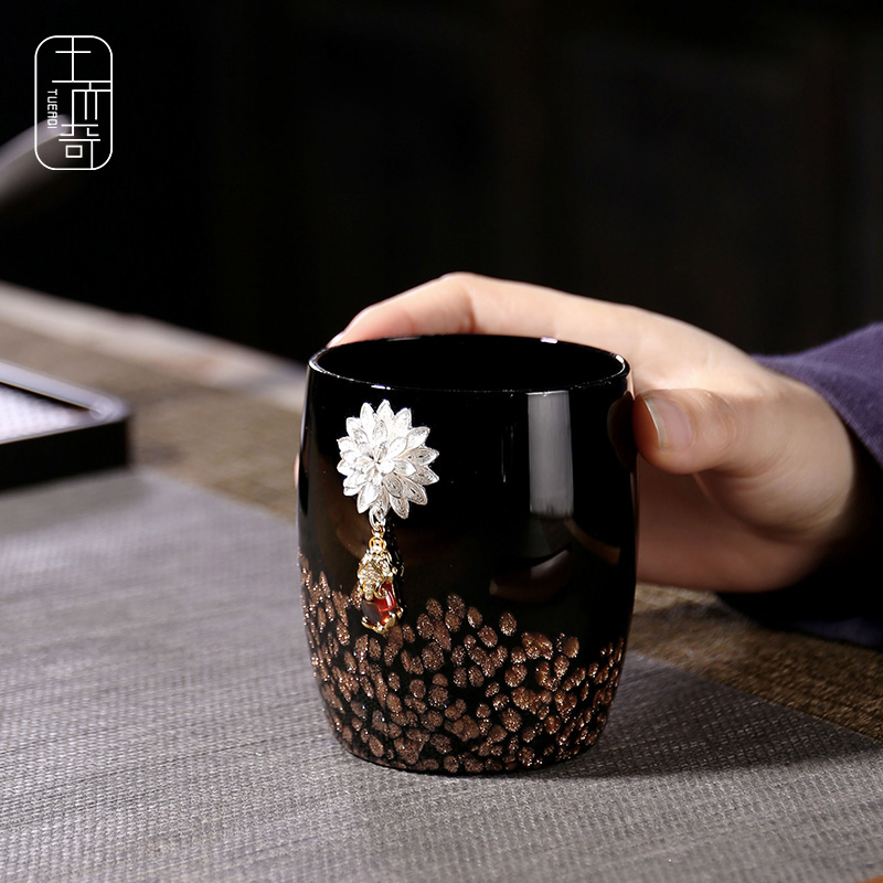 Inlaid Silver Black Crystal Golden Sand Thickened Glazed Cup Master's Cup Single Cup Pint Tea Cup Dragon Pineal Tea Tea Cup Gift Box Dress